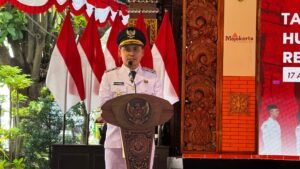 Mojokerto,Majapahitpos.com – Upacara Bendera dengan agenda pokok Pengibaran Bendera Merah Putih, Bendera Negara Kesatuan Republik Indonesia dan Pembacaan Teks Pancasila serta Teks Poklamasi digelar oleh Pemerintah Kabupaten (Pemkab) Mojokerto dalam rangka memperingati Hari Ulang Tahun (HUT) ke-80 Kemerdekaan Republik Indonesia, Minggu (17/8/2025) pagi mulai pukul 08.30 Wib, bertempat di halaman Pendopo Gara Maja Tama, jalan Ahmad Yani nomor 16 Mojokerto.